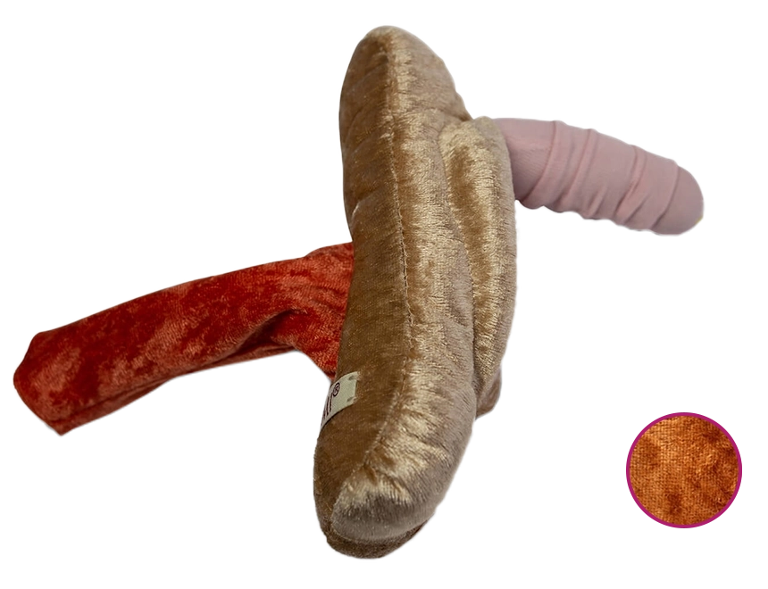 Entwicklung des Penis aus inneren Schamlippen, äußere Schamlippen, Vagina und verlängerte Scheidendarstellung, angedeutete Harnröhrenöffnung an der Eichel, sichtbare und nach innengehende Harnröhrenöffnung am Modellboden, angedeuteter Anus.